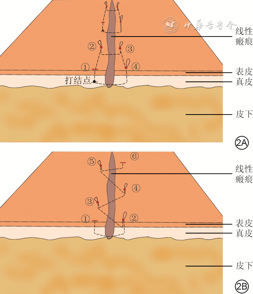 ZhangX, DiaoJS, GuoSZ, et al. Wedge-shaped excision and modified vertical mattress suture fully buried in a multilayered and tensioned wound closure[J]. Aesthetic Plast Surg, 2009,33(3):457-460. DOI: 10.1007/s00266-009-9311-6.
