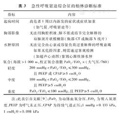 吸入性损伤尤其是中-重度吸入性损伤易演变为ARDS。ARDS的诊断和严重程度参考"柏林诊断标准"[9]。见表3。